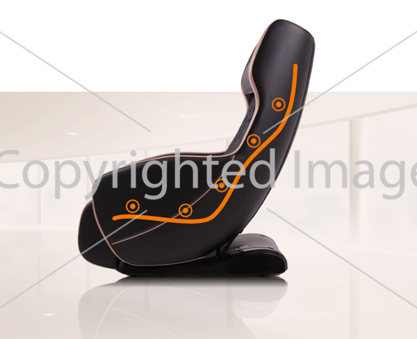 The massage chair has a modern L-shaped massage carriage that allows the massage rollers to move from the neck to the hips.