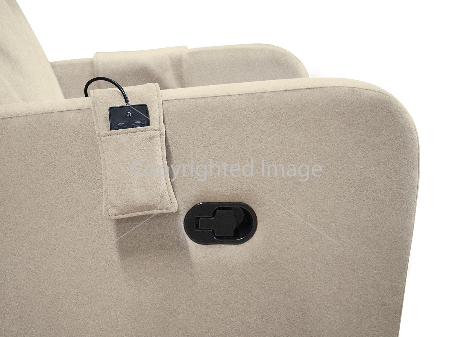 - The wired massage control panel is located in side pocket